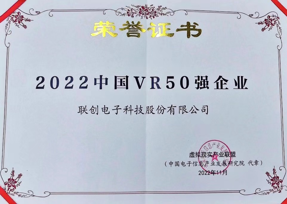 联创电子入选“2022中国VR50强企业”名单